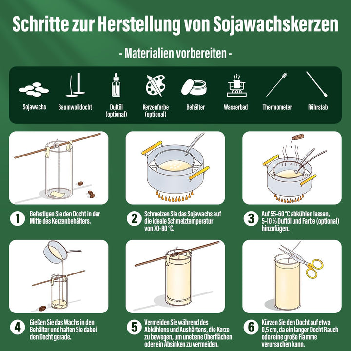 - 【100% Natürliches Sojawachs für Kerzen】Unser Kerzenwachs wurde mehrfach gefiltert, 100% reines natürliches Soja, keine Chemikalien, ungiftig, keine Verschmutzung, keine Zusatzstoffe, Geniessen Sie eine umweltfreundliche Alternative zu