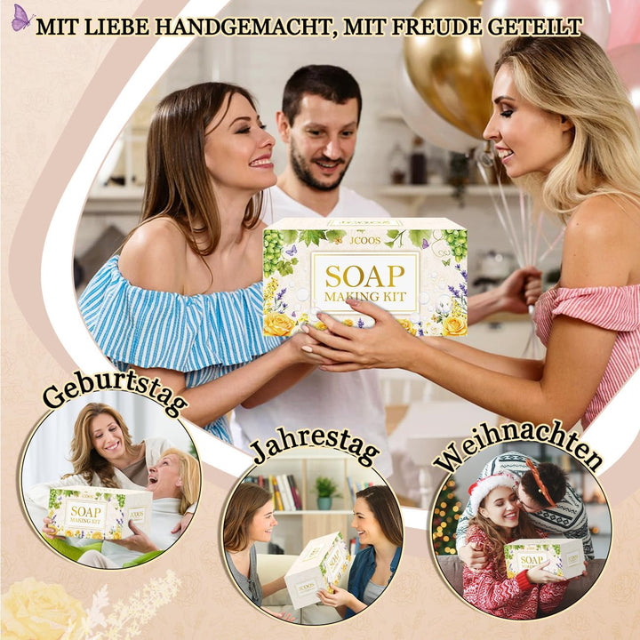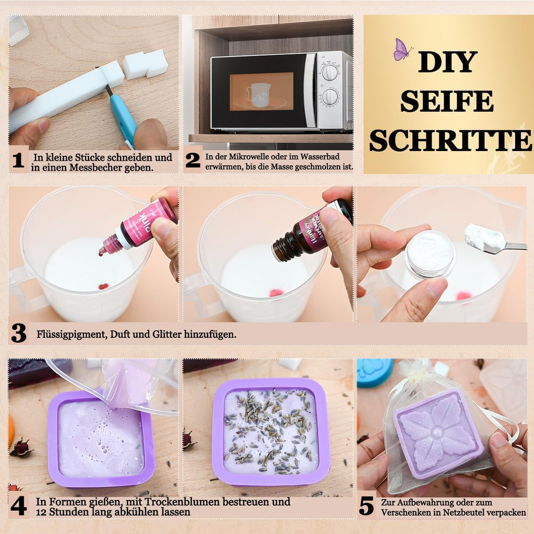 - LUSTIGES DIY: Geniessen Sie ein lustiges Seifenherstellungserlebnis und schaffen Sie unvergessliche Kunsthandwerksmomente für Erwachsene mit Familie und Freunden! Unser Seifen selber machen set zum Schmelzen und Giessen enthält zwei verschiedene