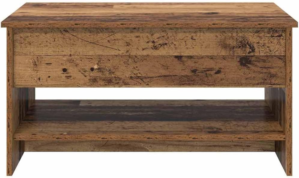 - Praktische Regale Der Tisch hat Regale, die aus demselben Holzwerkstoff wie der Rahmen sind. Diese bieten zusätzlichen Stauraum für Zeitschriften, Fotoalben oder Alltagsgegenstände und helfen, dein Wohnzimmer aufgeräumt zu halten.