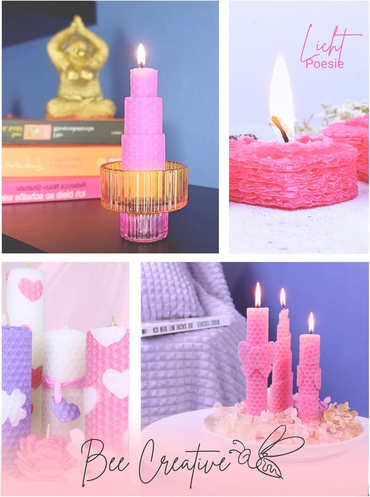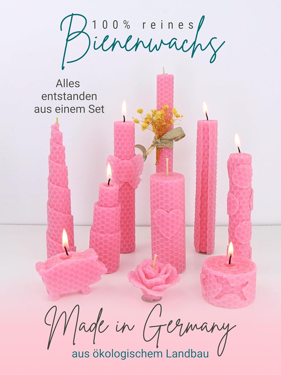 - 🕯️ DEIN KOMPLETTES STARTERSET FÜR 10 KERZEN – Alles drin, was Du brauchst: 10 farbige Bienenwachsplatten (20 × 15 cm), 10 vorgewachste Hanfdochte (21 cm Länge) und eine ausführliche, bebilderte Anleitung. Ideal, um sofort loszulegen – auch