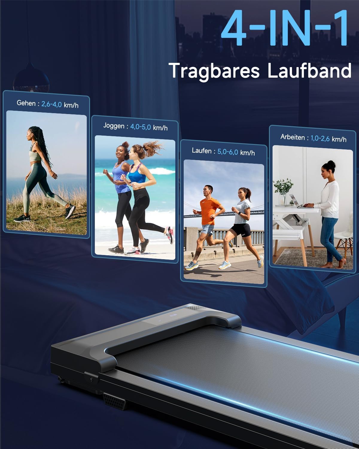 - Motor & Geschwindigkeitsbereich – Dieses Walking Pad ist mit einem leistungsstarken Motor ausgestattet und bietet Geschwindigkeiten von 1 bis 6 km/h. Der stabile Stahlrahmen mindert Vibrationen und Geräusche, wodurch es sich gut für den leisen