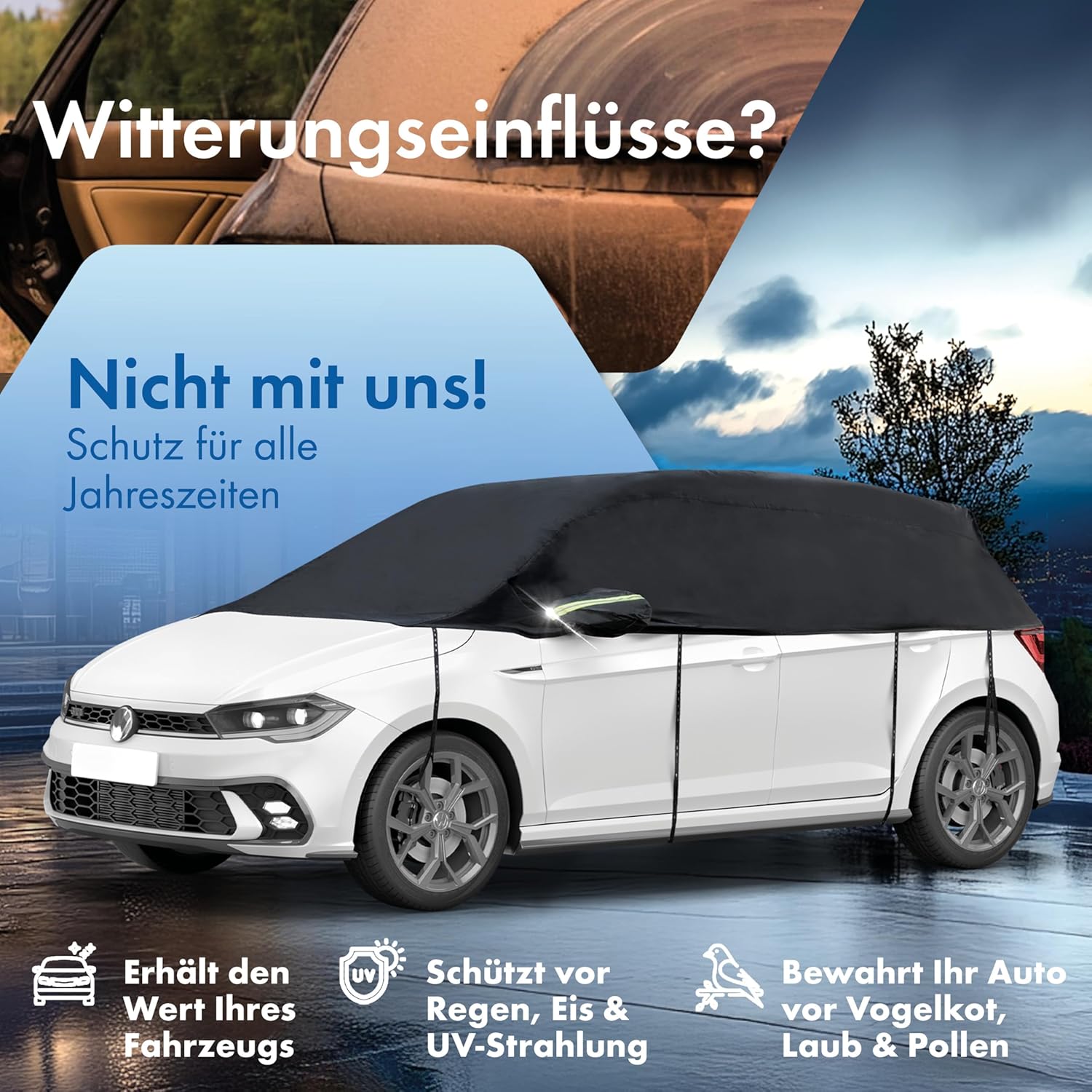 - Passgenaue Auto Abdeckung - Die WALSER Abdeckplane Auto wasserdicht ist in verschiedenen Grössen als PKW Abdeckung für Auto, Auto Abdeckplane SUV, Transporter Abdeckung bzw. Halbgarage erhältlich. Die praktischen Autoabdeckungen für den Winter und