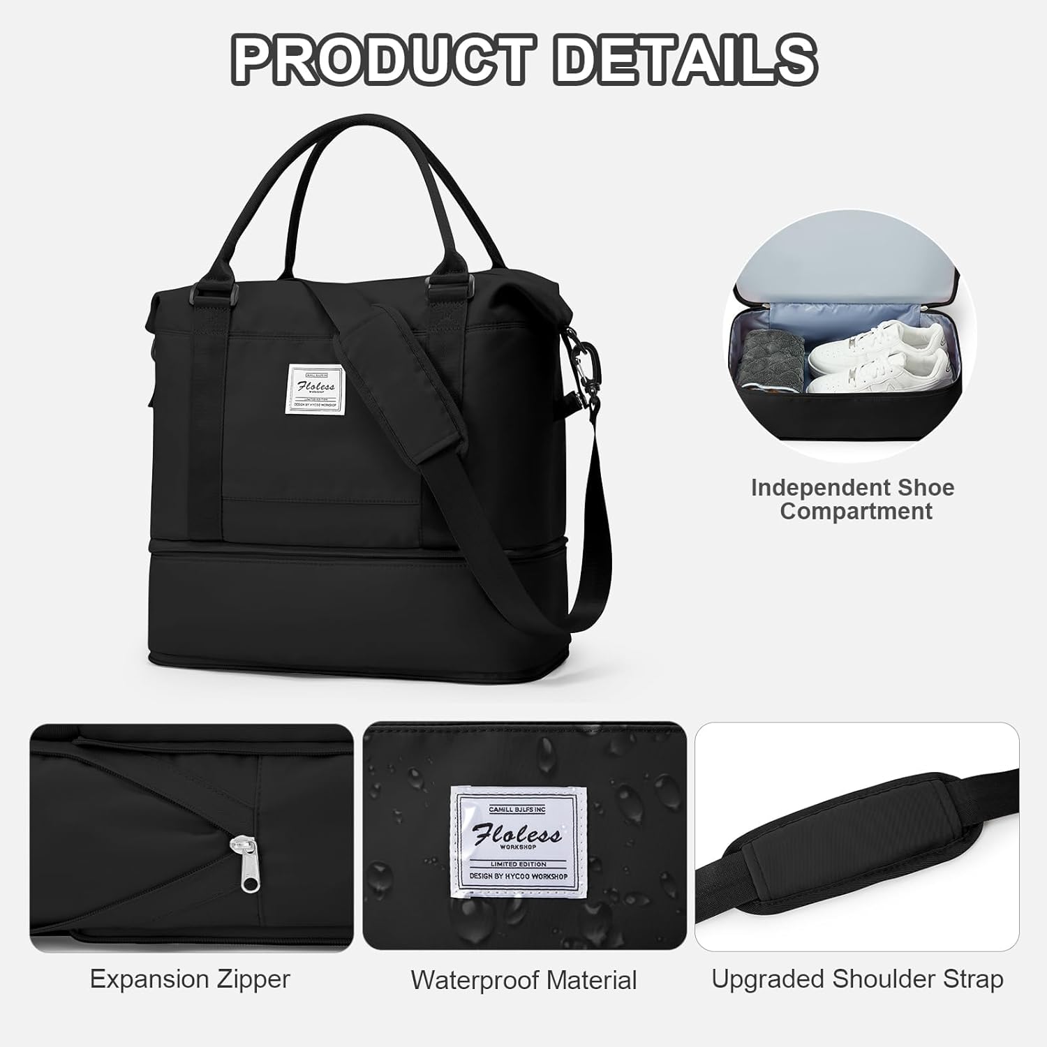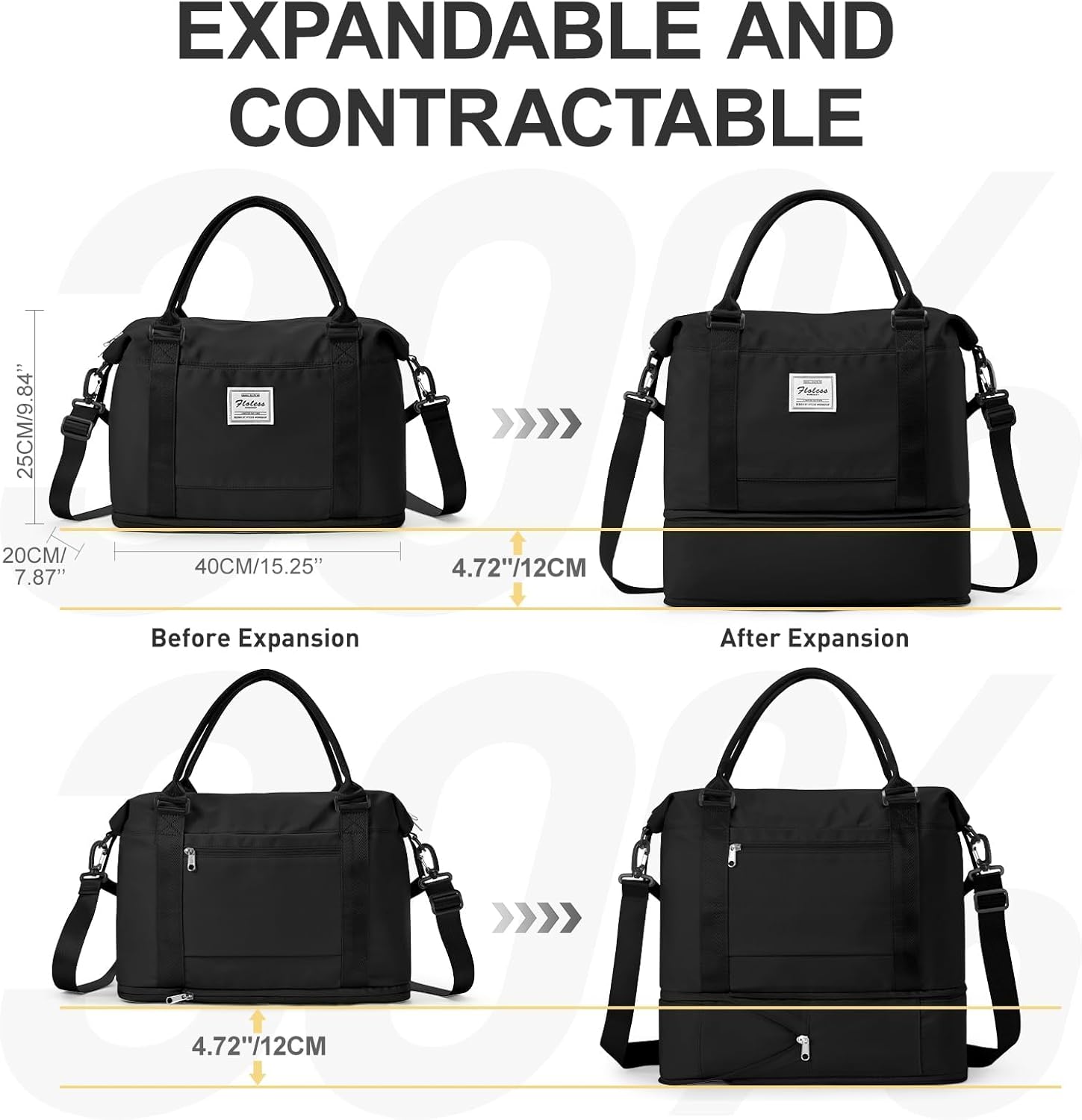 - 【Unabhängiger Erweiterungsraum】 Diese Reisetasche verfügt unten über einen Erweiterungsraum, der mit einem Reissverschluss gefaltet oder entfaltet werden kann. Sie können diesen Erweiterungsraum als unabhängiges Schuhfach verwenden, um Ihre