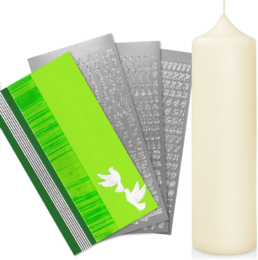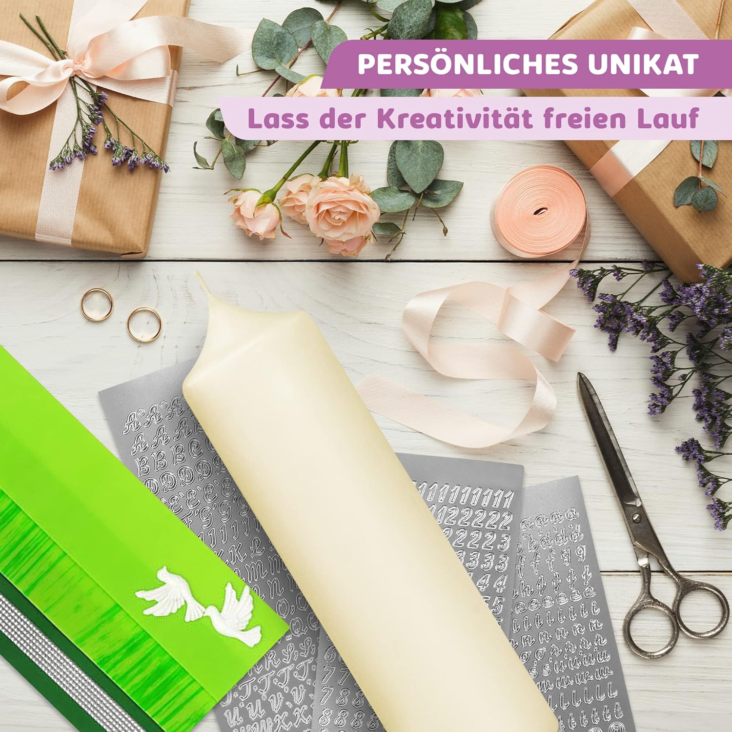 - 🕯️ EINZIGARTIG: Verzieren Sie mit diesem DIY-Set ganz einfach Ihre persönliche & individuelle Kerze. Die ideale Geschenk-Idee für feierliche Anlässe, wie Hochzeit oder Taufe