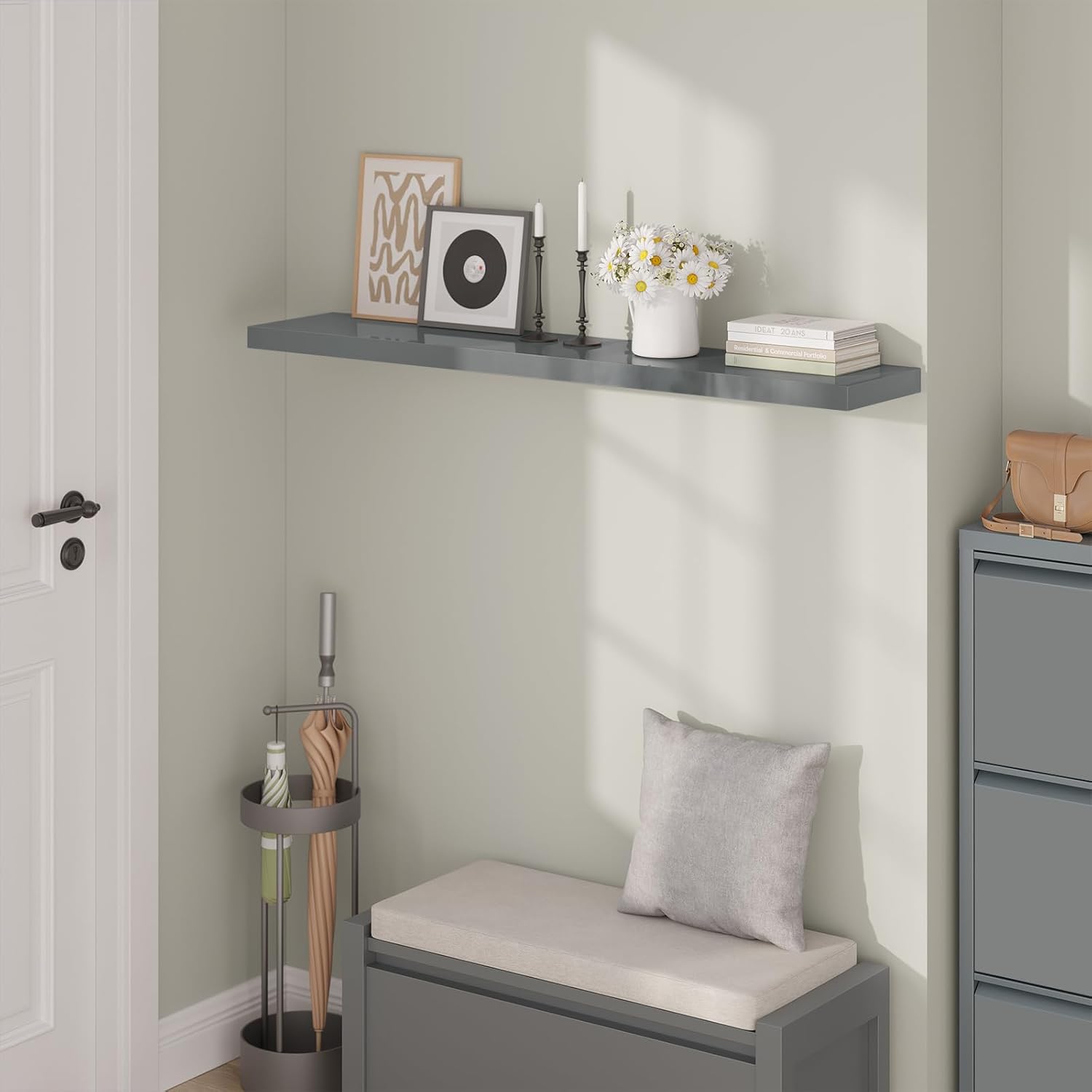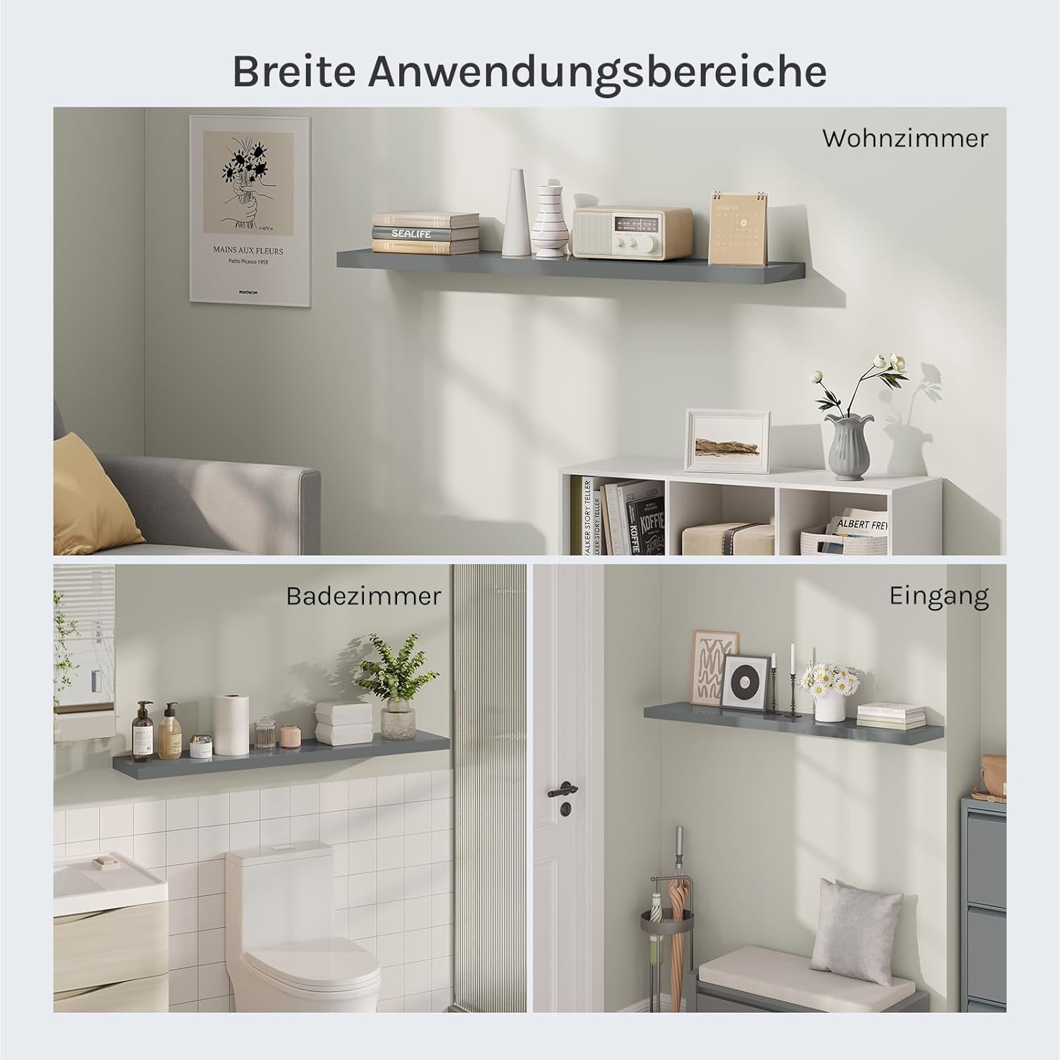 - PREMIUM MATERIAL: Aus hochwertigem MDF (optimiert) mit glattem Furnier gefertigt, ist das schwebende Regal wasserabweisend, leicht zu reinigen und formstabil. Mit starker Metallhalterung ist es stabil, haltbar und kann bis zu 10 kg tragen