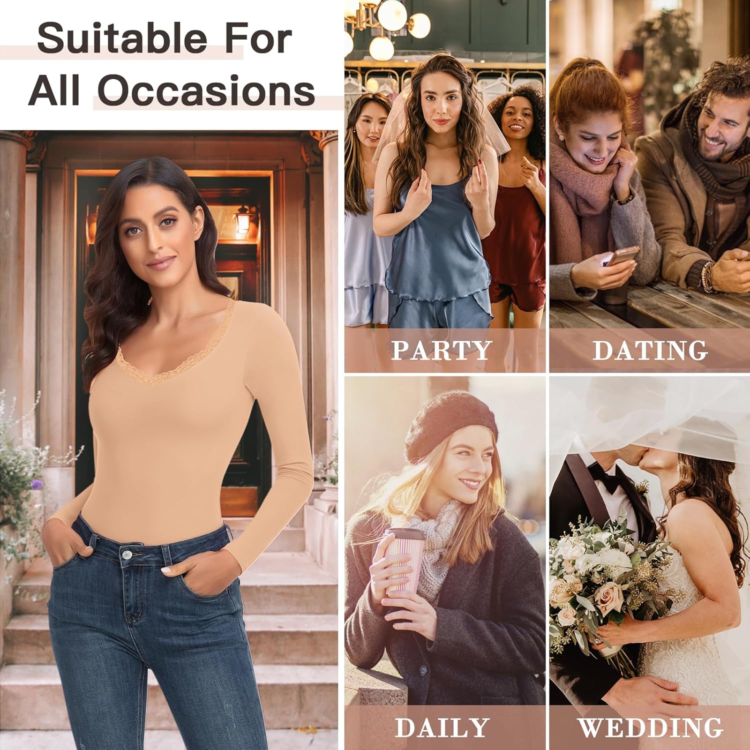 - 【Damen Body Elegant mit Spitzenausschnitt】 Der Spitzenbesatz am V-Ausschnitt verleiht Ihrem Look Eleganz und macht diesen Langarmbody schick. Zeigen Sie Ihre Schlüsselbeine und Ihren Hals und sehen Sie gepflegt und elegant aus, aber nicht