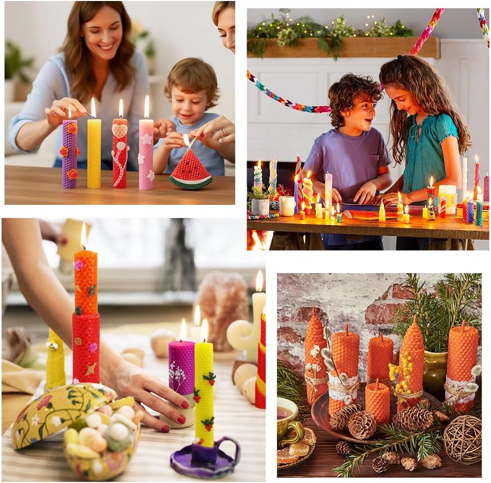 - 【Gemütliche Atmosphäre & Wohndekoration】Bienenwachskerzen selber machen bedeutet, individuelle Akzente fürs Zuhause zu schaffen. Die satten Farben der Bienenwachsplatten für Kerzen verleihen jedem Raum warmes, lebendiges Licht und eine einladende
