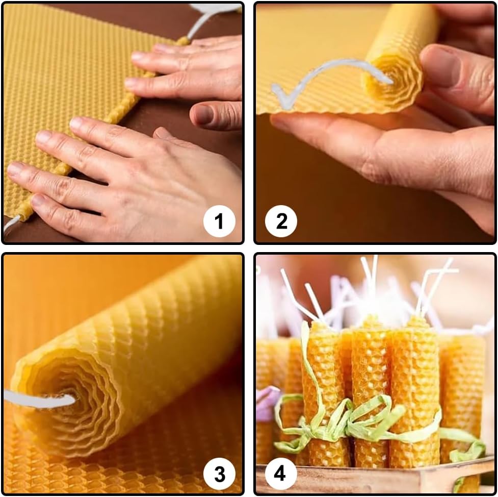 - 【Premium Bienenwachsplatten für Sauberes Brennen】 Unsere Bienenwachsplatten bestehen aus 100% natürlichem Bienenwachs ohne Zusätze von Paraffin oder schädlichen Chemikalien. Die spezielle Wabenstruktur der Bienenwachsplatten für Kerzen