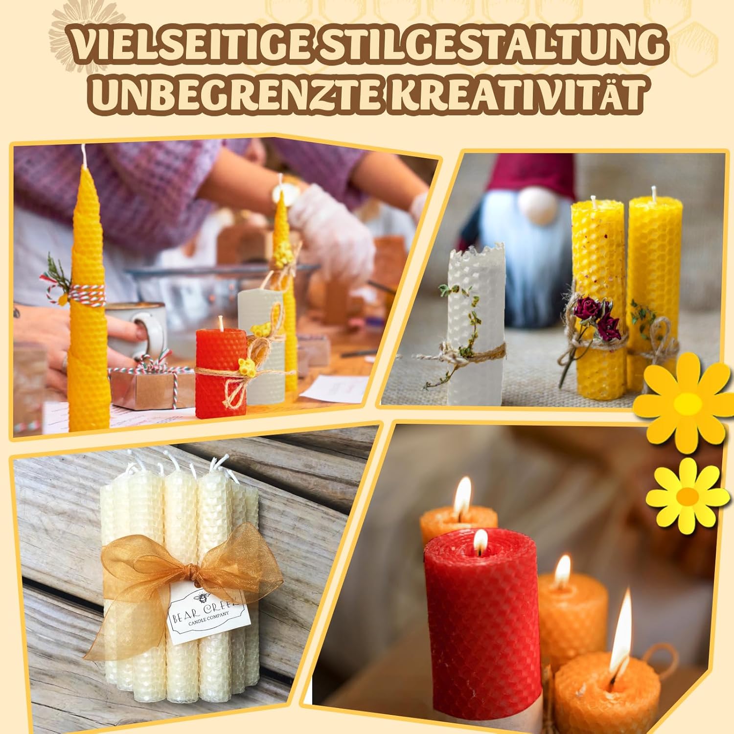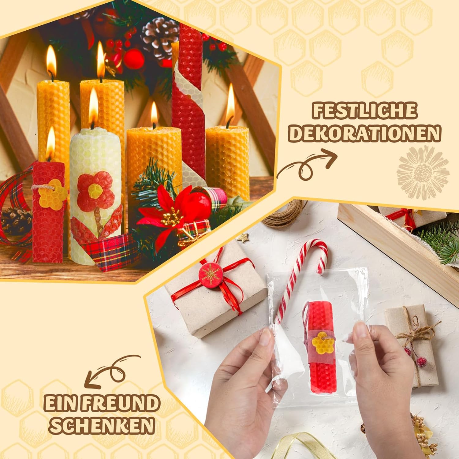 - âšăLeicht zu MachenăMit unseren bienenwachsplatten fĂŒr kerzen benötigen Sie keine speziellen Werkzeuge oder Vorkenntnisse. Setzen Sie den Docht in die Platte, rollen Sie diese auf und prĂ€gen Sie mit den Formen hĂŒbsche Muster â schon ist eine