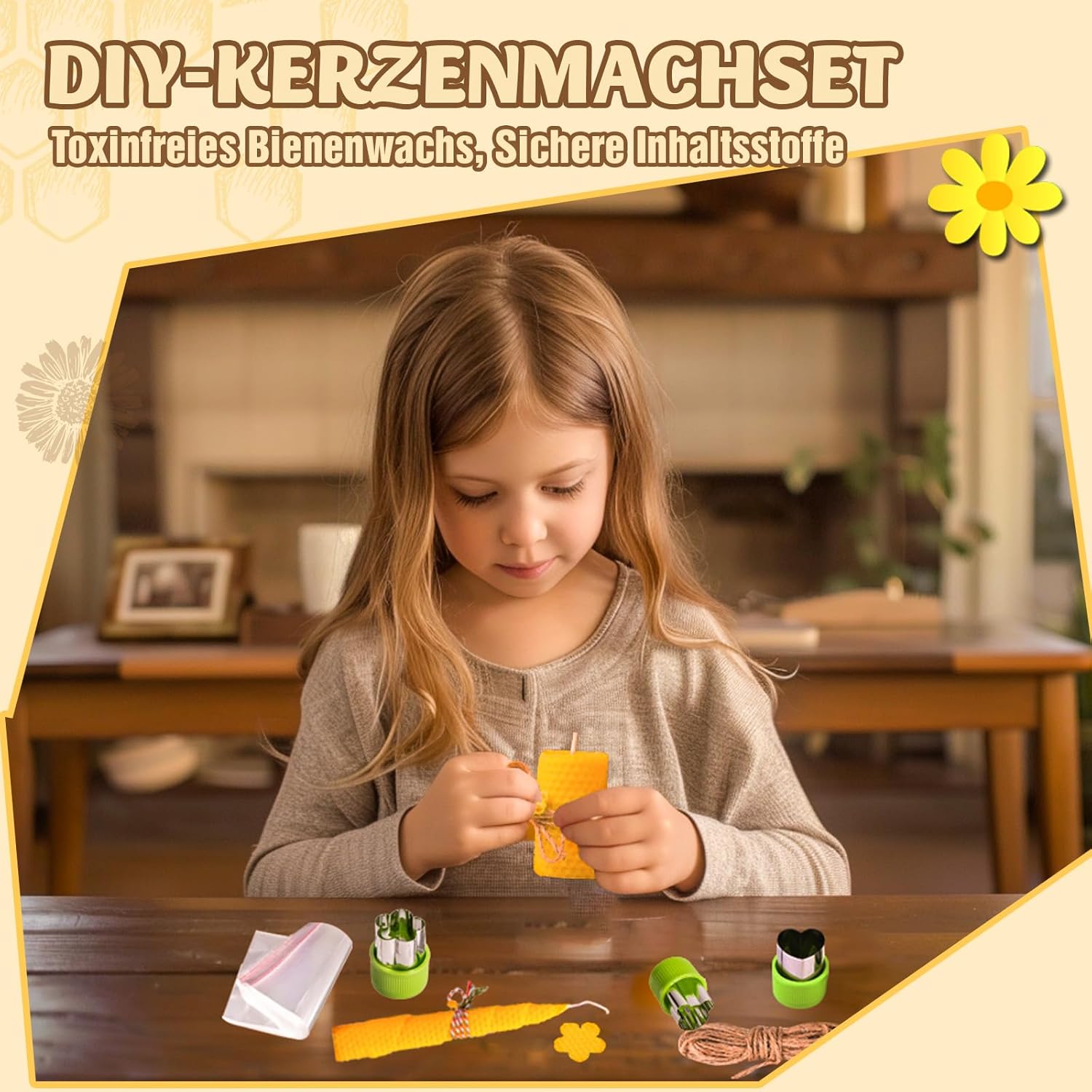 - 🎁【Tolle Geschenkidee】Das DIY-Set kommt in einer hochwertigen Geschenkbox und eignet sich perfekt als Präsent für Kinder, Freunde oder Familie. Selbstgemachte Bienenwachskerzen sind nicht nur einzigartige Geschenke, sondern auch wunderbare