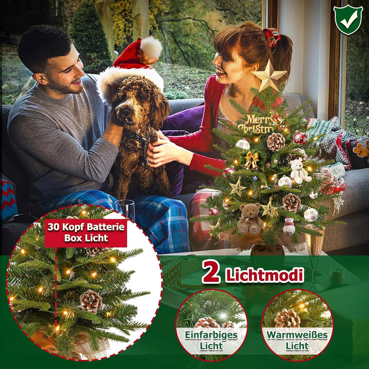 - 🎄Warmweisse LED-Beleuchtung:Mit 30 warmweissen LED-Lichtern zaubert dieser kleine Weihnachtsbaum eine sanfte und stimmungsvolle Beleuchtung in Ihr Zuhause. Dank der Batteriebetrieb-Box sind Sie nicht an Steckdosen gebunden und können den Baum