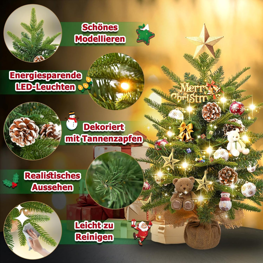 - 🎄Für jede Umgebung geeignet:Dieser künstliche Mini-Tannenbaum mit dichten, lebensechten Zweigen und strahlendem Tannengrün bringt Weihnachtszauber in Wohnzimmer, Büro oder Geschäft. Dank seines vielseitigen Designs sorgt er überall für