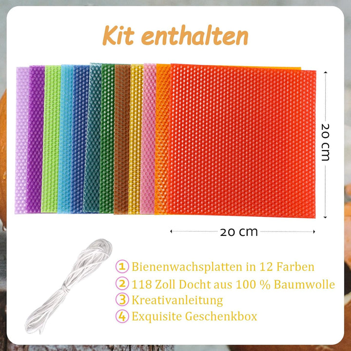 - Zakouinn Bienenwachs-Kerzenherstellungsset für Kinder - 12 leuchtende Farben, Bienenwachsblätter zur Kerzenherstellung, Bienenwachskerzen-DIY-Kit für Erwachsene