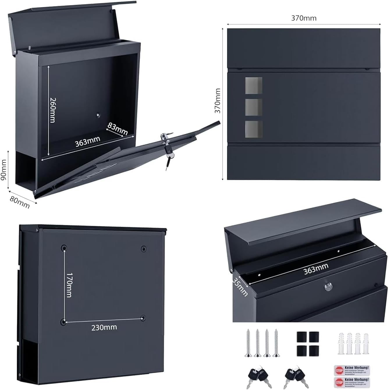 - 【Langlebigkeit】Der Briefkasten besteht aus verzinktem Blech und ist robust und langlebig. Die matte Pulverbeschichtung schützt den Briefkasten vor Umwelteinflüssen - 100 % UV-Schutz.Dieser wasserdichte Briefkasten hält Ihre Post trocken und wird