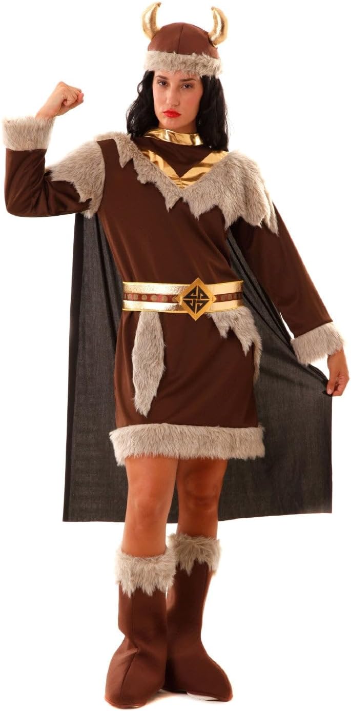 EUROCARNAVALES Kostüm Wikinger Frau Odeta S- XXL Kleid braun Fasching Seeräuberin (XXL), S-XXL