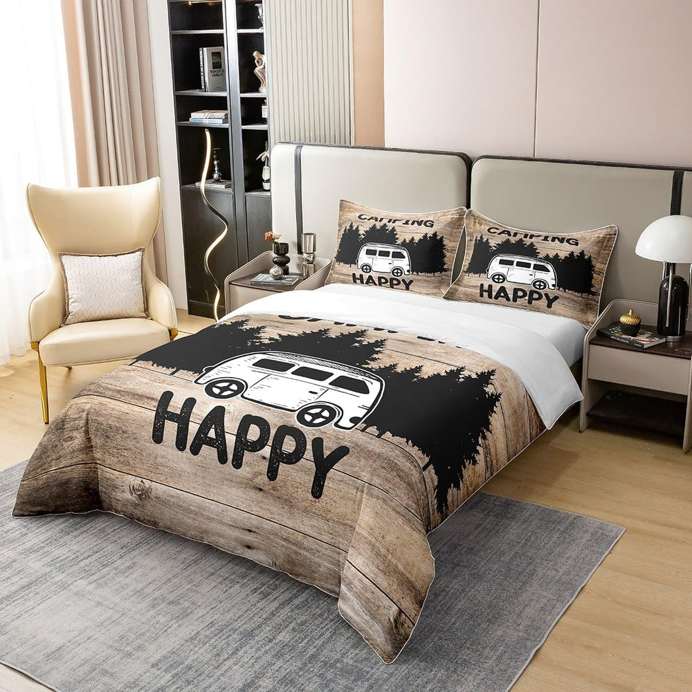 Kinder Wohnmobil Auto 100% Baumwolle Bettbezug 135x200,Glückliche Camping Tröster Abdeckung,Cartoon
