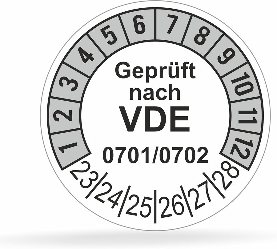 Fluxxx 560 Stk Prüfplaketten "Geprüft nach VDE", 20 mm Ø, Prüfetiketten nach DGUV V3, 2023-2028, sel