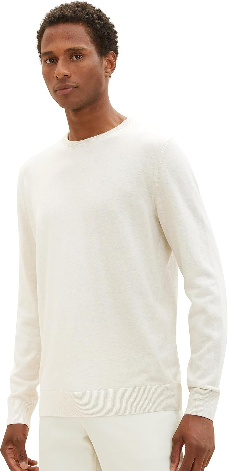 TOM TAILOR Herren Basic Crewneck Strickpullover XL 32715 - Vintage Beige Grey Melange, XL 32715 - Vi