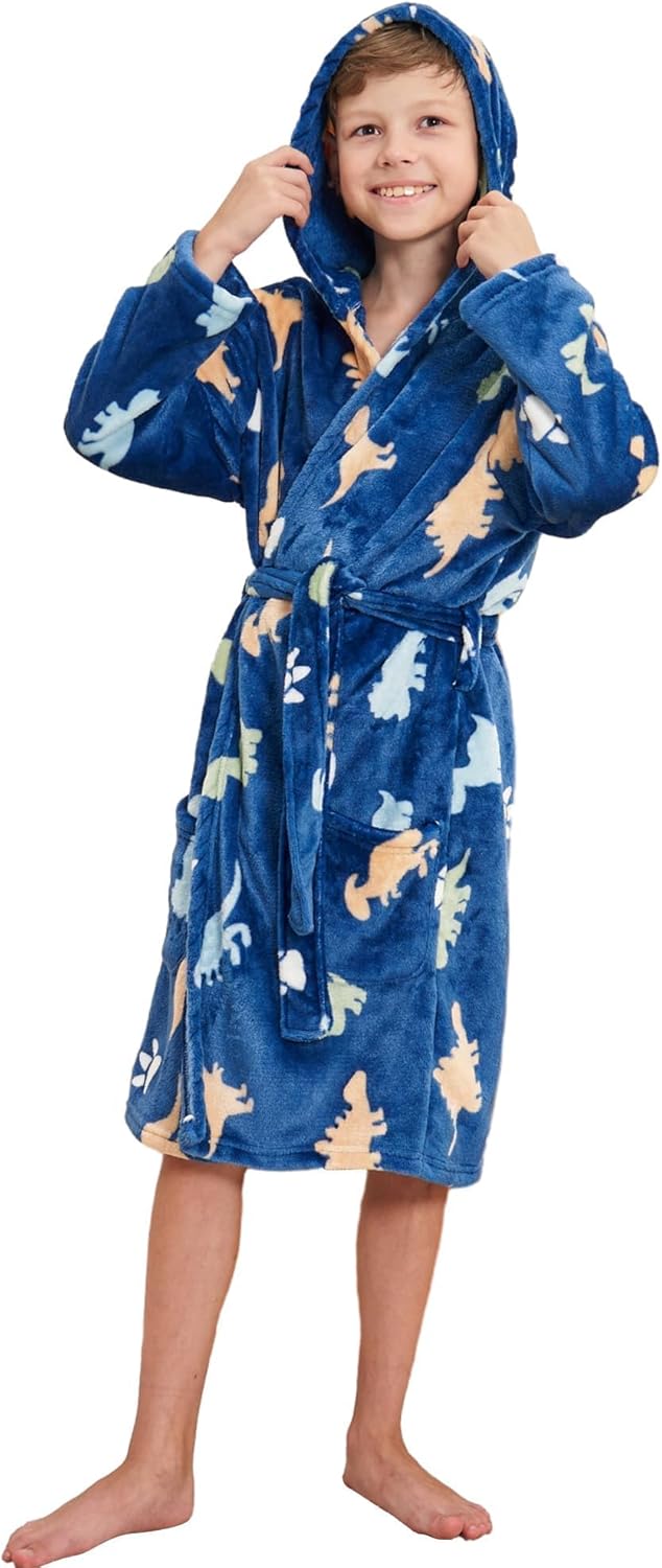 V.&GRIN Bademantel Kinder Mädchen, Fleece Kinderbademantel mit Kapuze für Jungen von 3–14 Jahren in