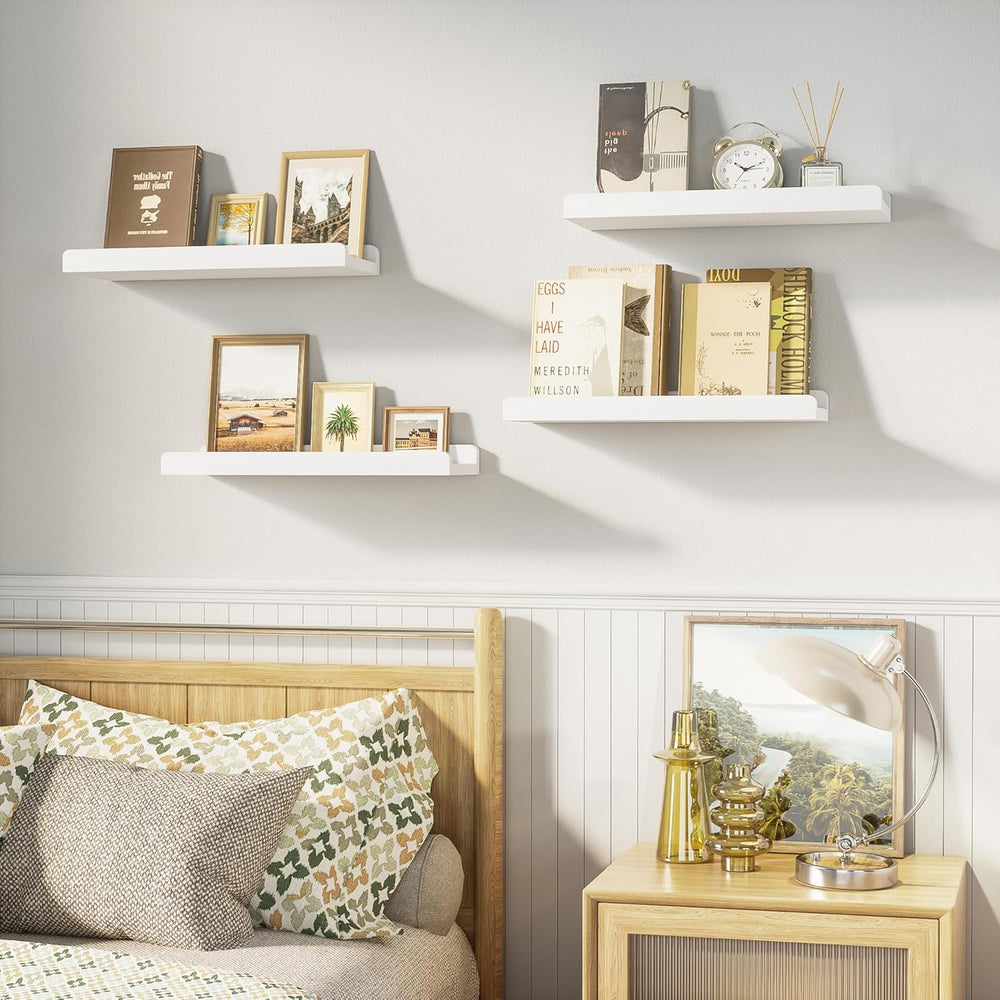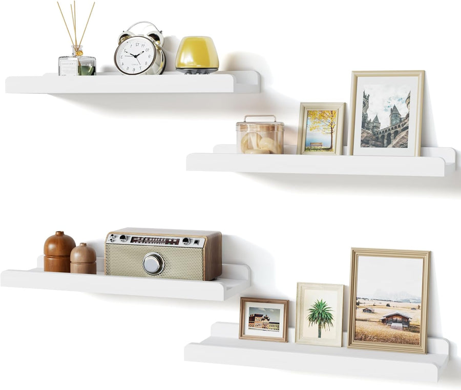 Love-KANKEI Wandregal Weiss Holz Regal Wand, Bilderleiste 4er Set Schweberegal Regale für Wände 40cm