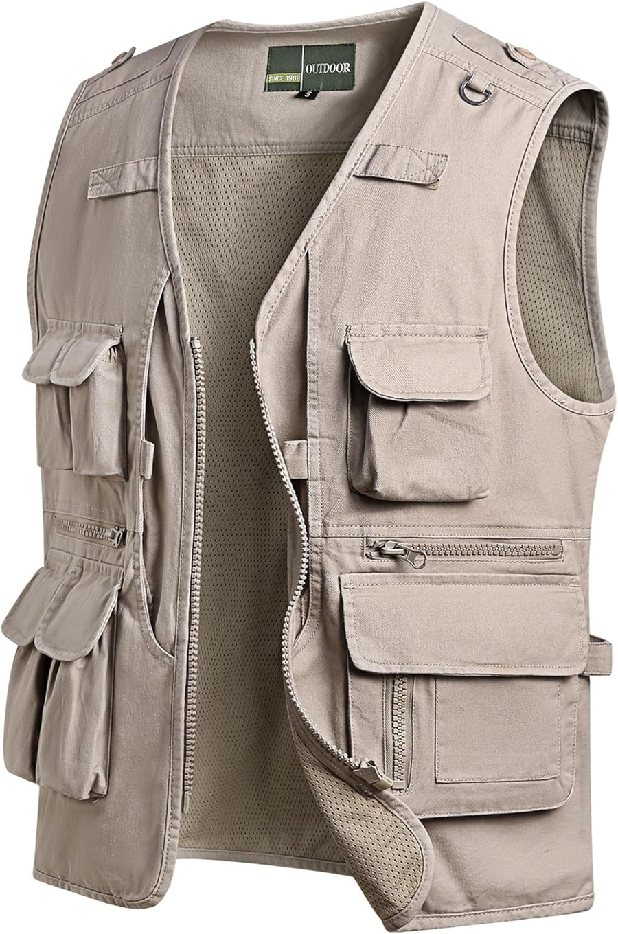 MeiLayM Herren Outdoor Weste Anglerweste mit Multi-Taschened Sommer Freizeit Baumwolle Weste Hundewe