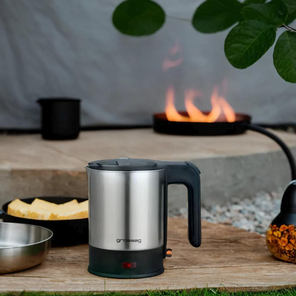 grossag WK 6.07, Kompakter Reise-Wasserkocher 0,5L Edelstahl-Topf, umschaltbare Spannung (115V/230V)