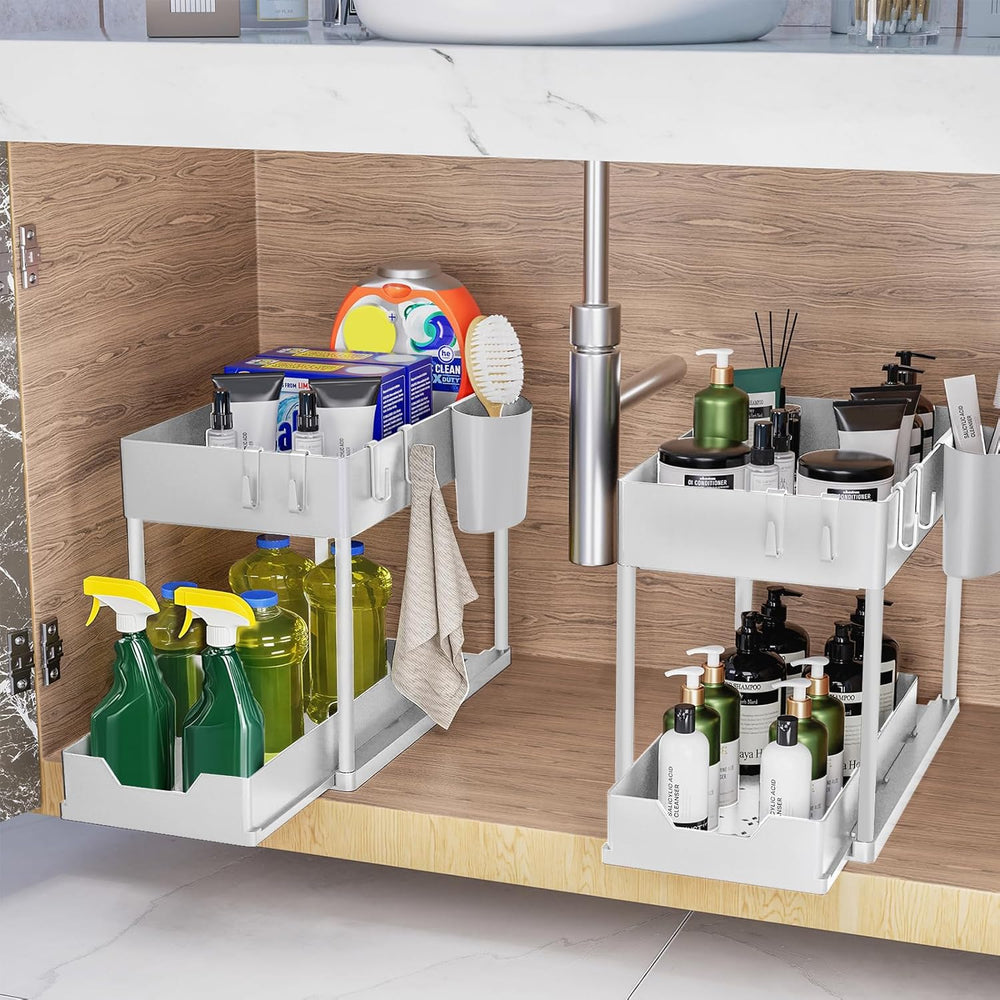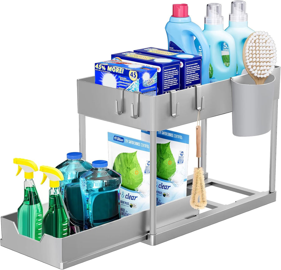 Puricon Unter Waschbecken Regal, 2 Etagen Standregal Küche Arbeitsplatte Regal Organizer, Mehrfunkti