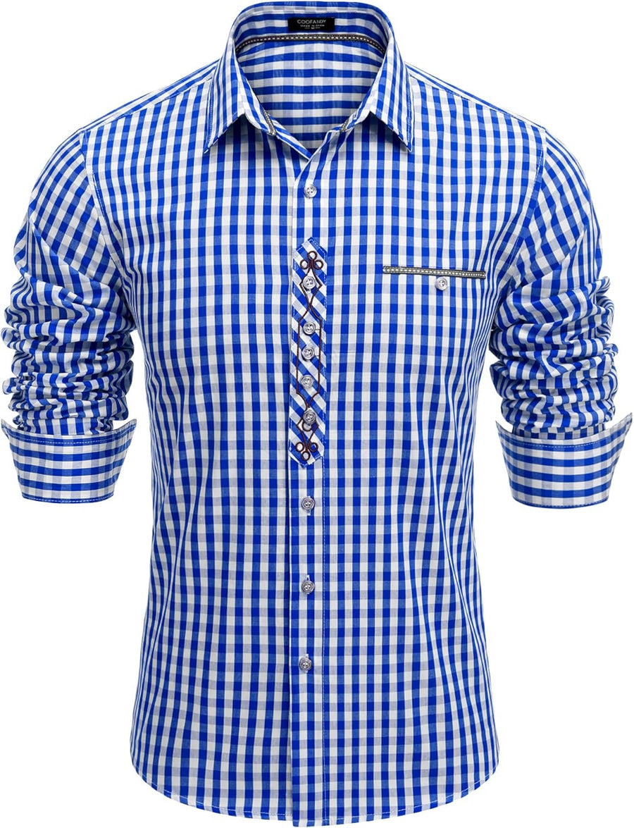 COOFANDY Hemd Herren Langarm Trachtenhemd Kariertes Oktoberfest Hemd Freizeithemd Karohemden Herrenh