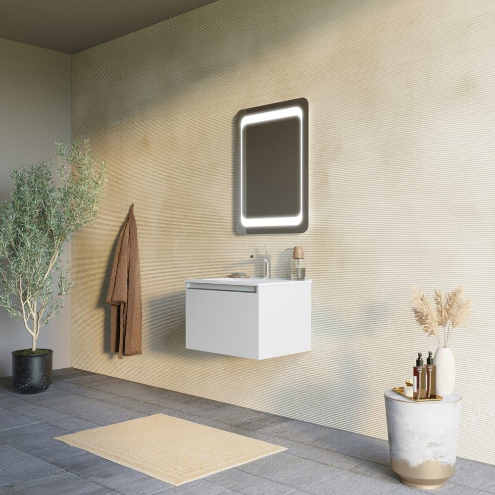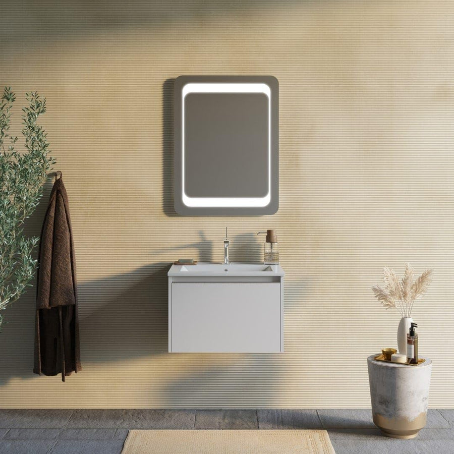KIAMAMI VALENTINA Möbel für das Badezimmer in mattem Hellgrau, 60 cm, Waschbecken und Spiegel 60x80