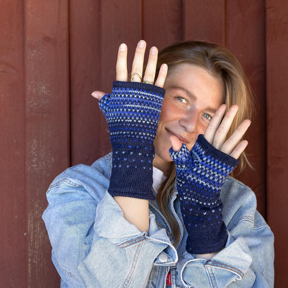 Damen Pulswärmer Armstulpen Modell Ida Anthrazit Blau Tiedye 95 236, Anthrazit Blau Tiedye 95 236