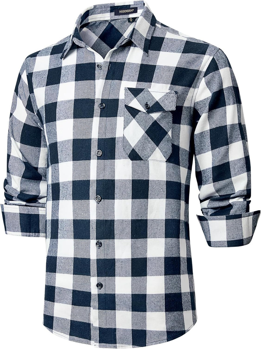 HISDERN Flanellhemd Herren Karierte Hemden Herren Langarm Button Down Baumwolle Holzfällerhemd Regul