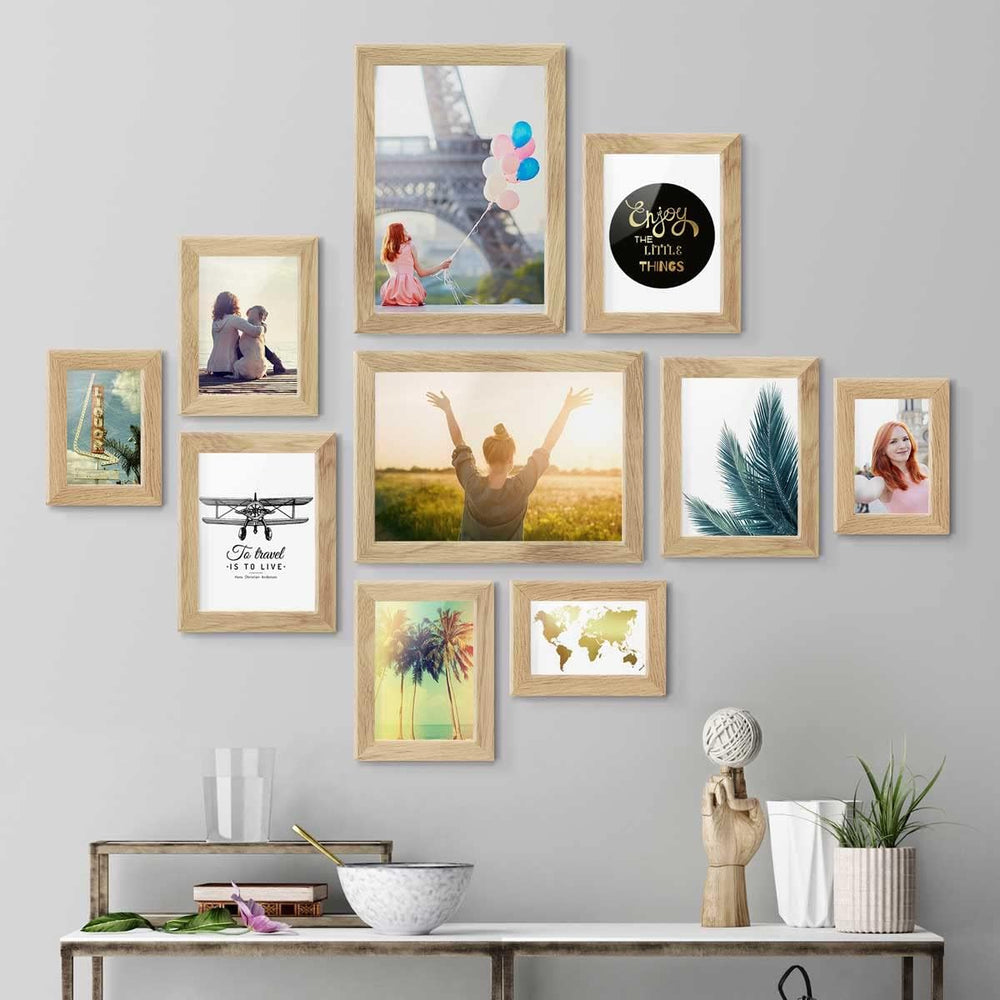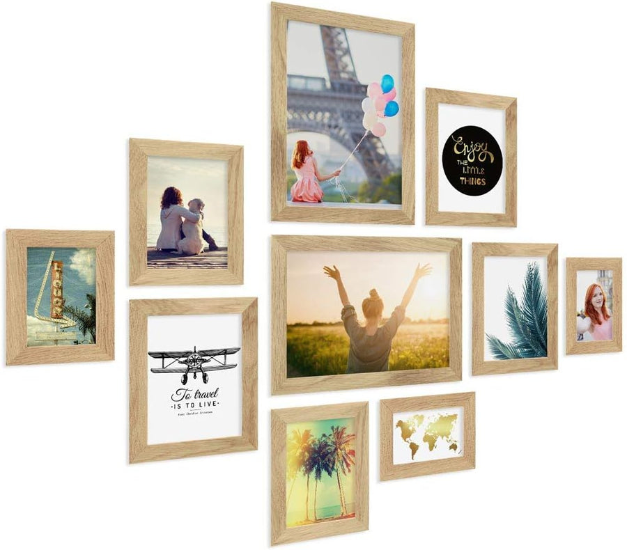 PHOTOLINI Bilderrahmen Set Holz, Fotorahmen Holz Echtholz, 10er Bilderrahmenset Wand Collage, photo