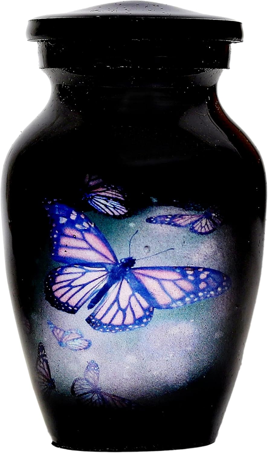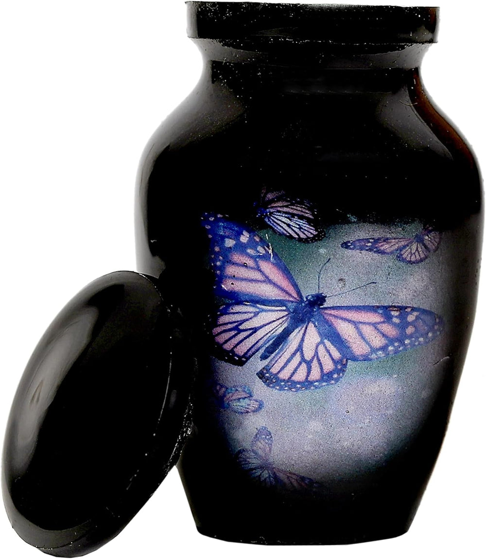 hlc Schöne Schwarze Schmetterlings-Urne, 1 Stück – Mini-Urne für menschliche Asche mit 1 Samtbeutel