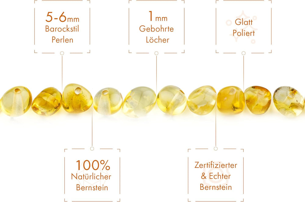 Bernstein Perlen im Barock-Stil - Poliert und Roh 100% Naturliche Baltischen Harz Stein 5–6 mm Lose