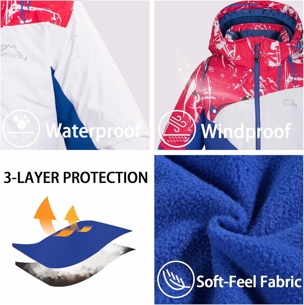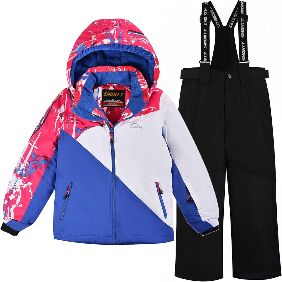 SMONTY Skianzug Kinder Schneeanzug Mädchen Wasserdicht Winddicht und Warm 2-tlg mit Kapuze 6-16 Jahr