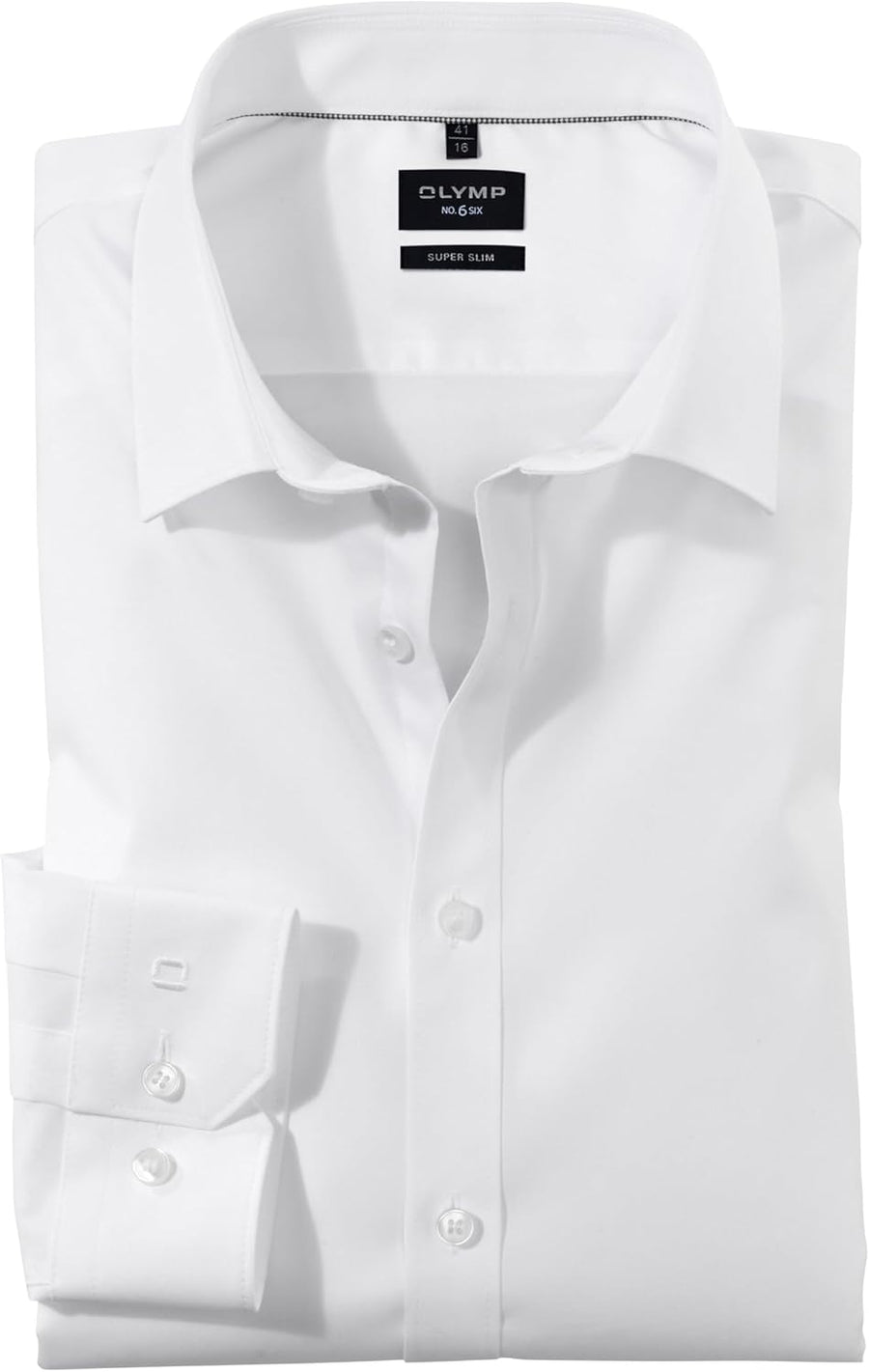 OLYMP Herren Businesshemd Langarm No.Six,Einfarbig,super Slim,Urban Kent 36 Weiss, 36 Weiß