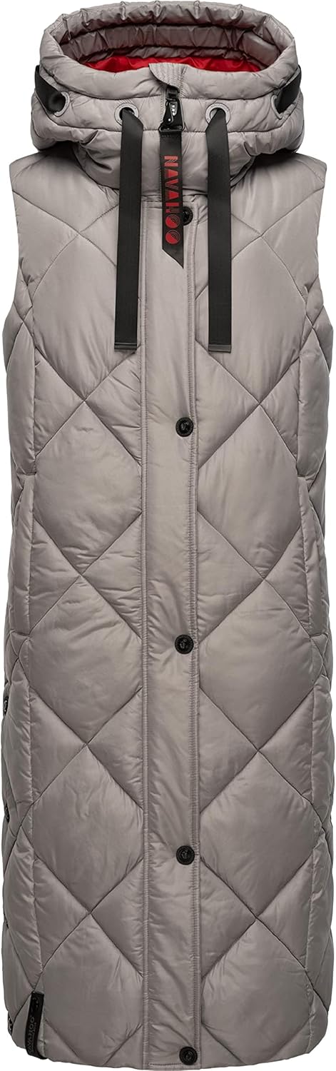 Navahoo warme Damen Winter Steppweste lang mit Kapuze Schnuckel XS-XXL XS Zinc Grey, XS Zinc Grey