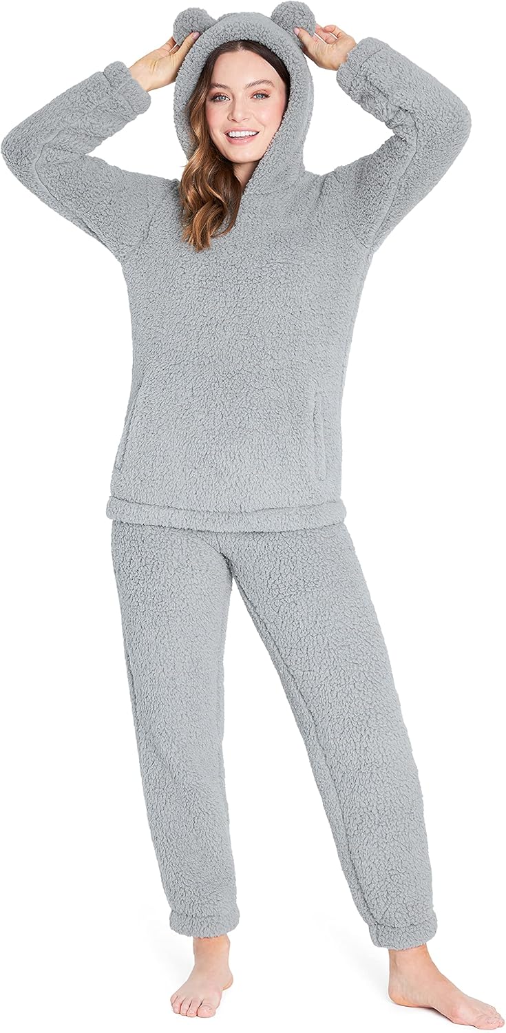 CityComfort Schlafanzug Damen Warm Fleece Pyjama Damen Hausanzug Kuschelig S Grau, S Grau