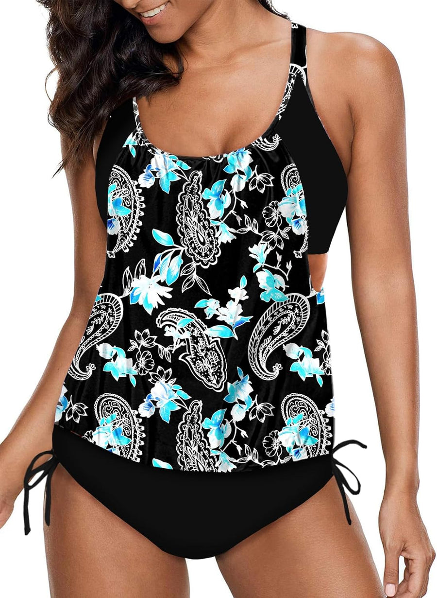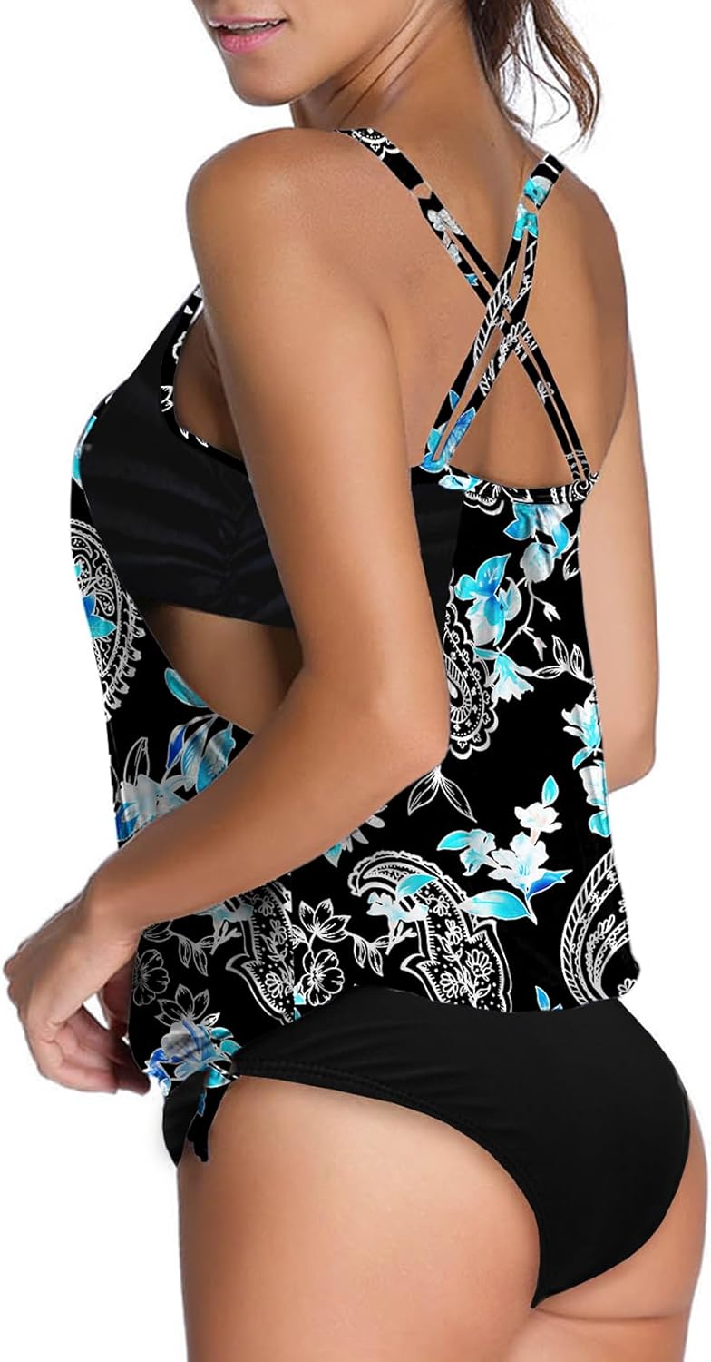 Aleumdr Tankini Set Damen Bauchweg Tankinis Push Up Damen Zweiteiler Badeanzüge Bademode Set Damen S