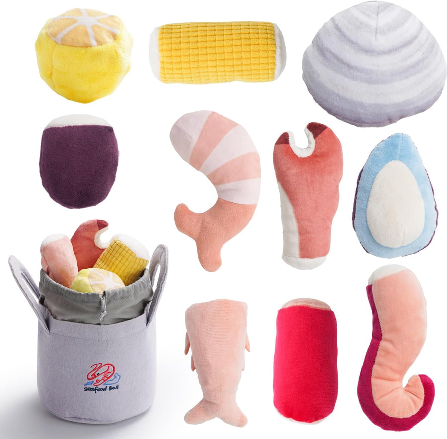 Nocciola 10er-Set Seafood Boil Kleine Hundespielzeuge gegen Langeweile, Knisternde Hundespielzeuge m