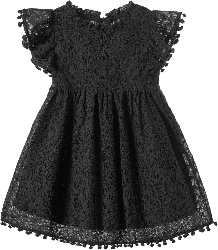 Beganly Mädchen Elegante Prinzessin Spitzenkleid Kleinkind Vintage Pom Pom Flatterärmel Party Kleide