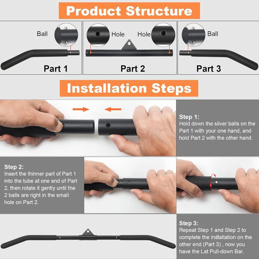 SERTT 39 Zoll LAT Pulldown Bar Attachment for Pulley Cable Machine, Curl Tricep Press Down Bar with
