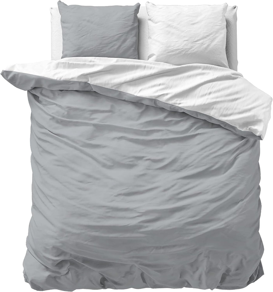 Sleeptime 100% Baumwolle Bettwäsche 240cm x 220cm Weiss/Grau - weich & bügelfrei Bettbezüge mit Druc