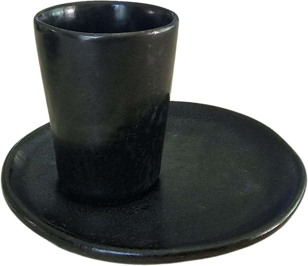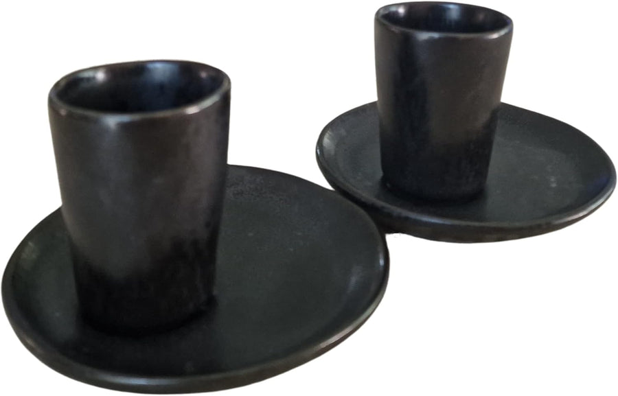 PintoCer - Espresso Kaffeetassen aus weissem Steingut, ohne Griff mit brauner Untertasse (Schwarz/Sc