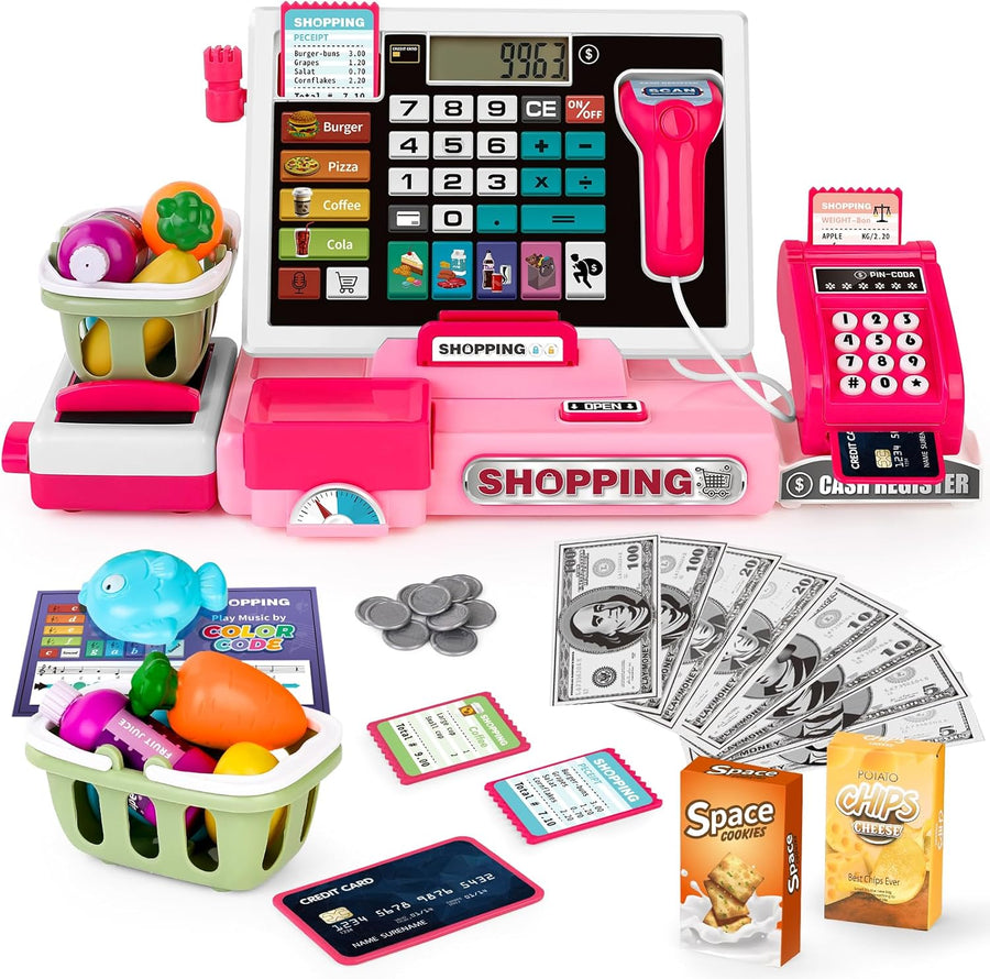 2025 Kinderkasse Registrierkasse Spielzeug Lernspielzeug Set, Geschenk für Kasse Kinder, Kleinkind P