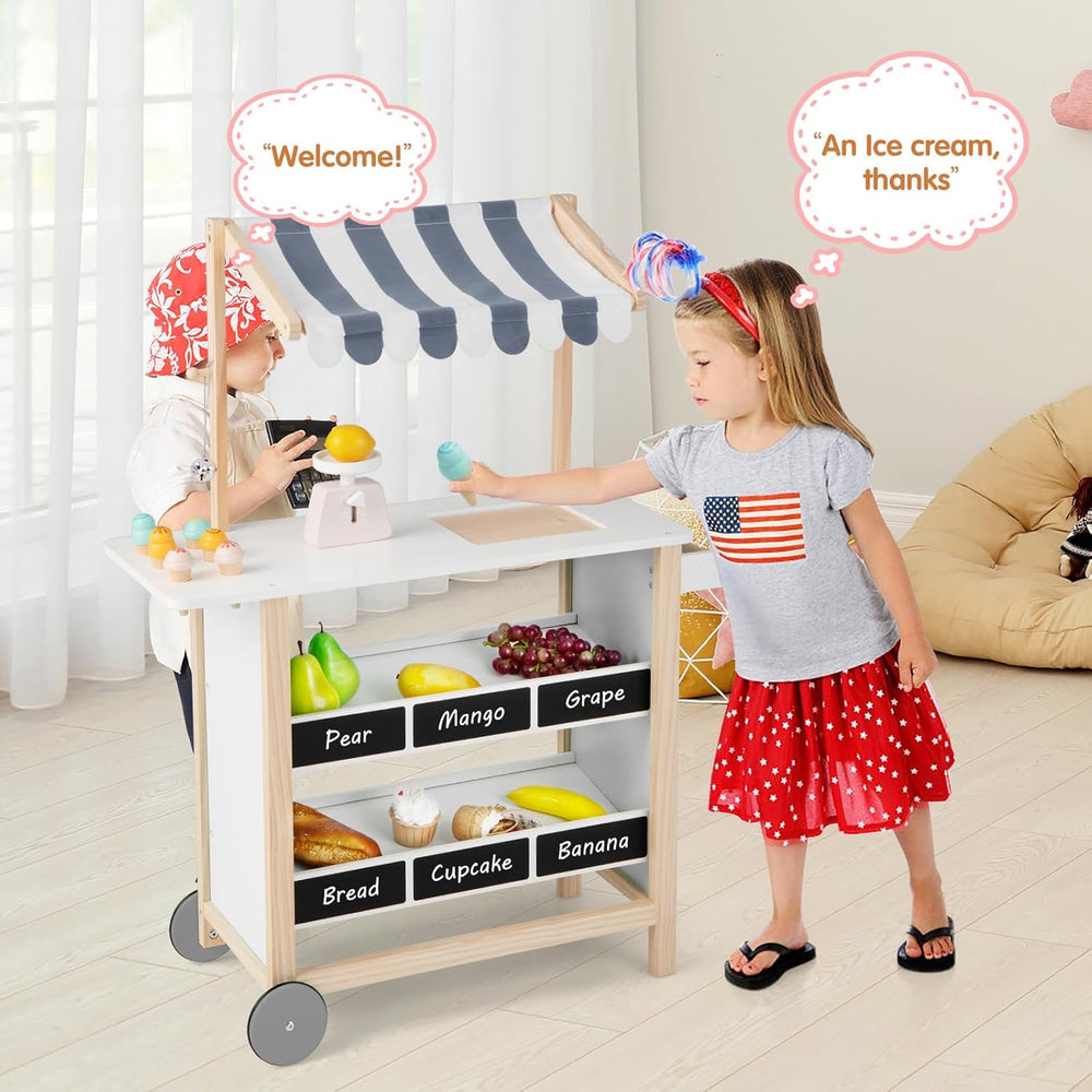 HOMASIS Kinder Eiswagen inkl. Zubehör, Kaufladen mit 6 Spielzeug-Eiscreme, Eisdiele mit beweglichen