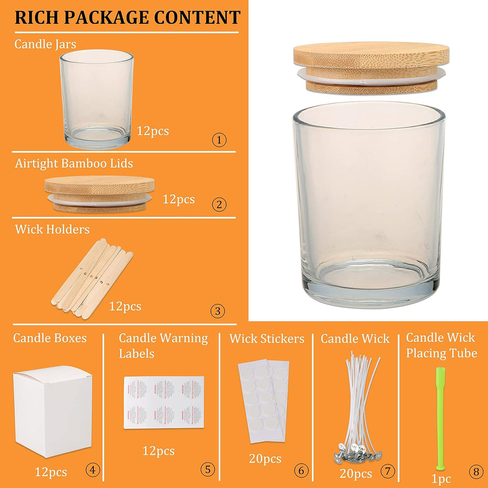 MILIVIXAY 12 Stück 284 ml mehrfarbige Kerzengläser aus Glas mit Deckel und Kerzenherstellungs-Sets –