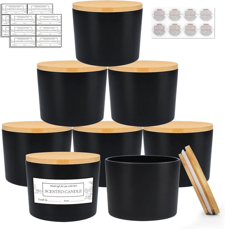 MILIVIXAY Mattierte schwarze Kerzengläser aus Glas mit Deckeln und Kerzenherstellungs-Sets, leere Ke