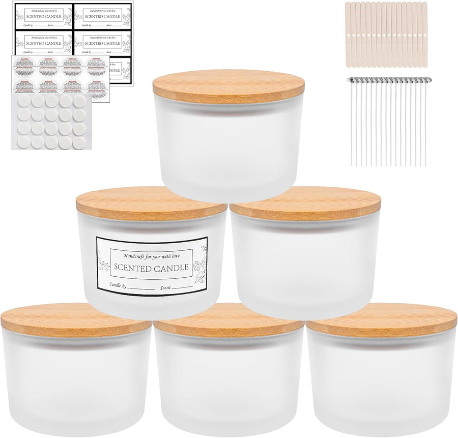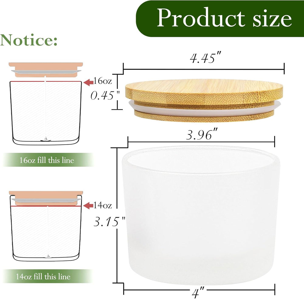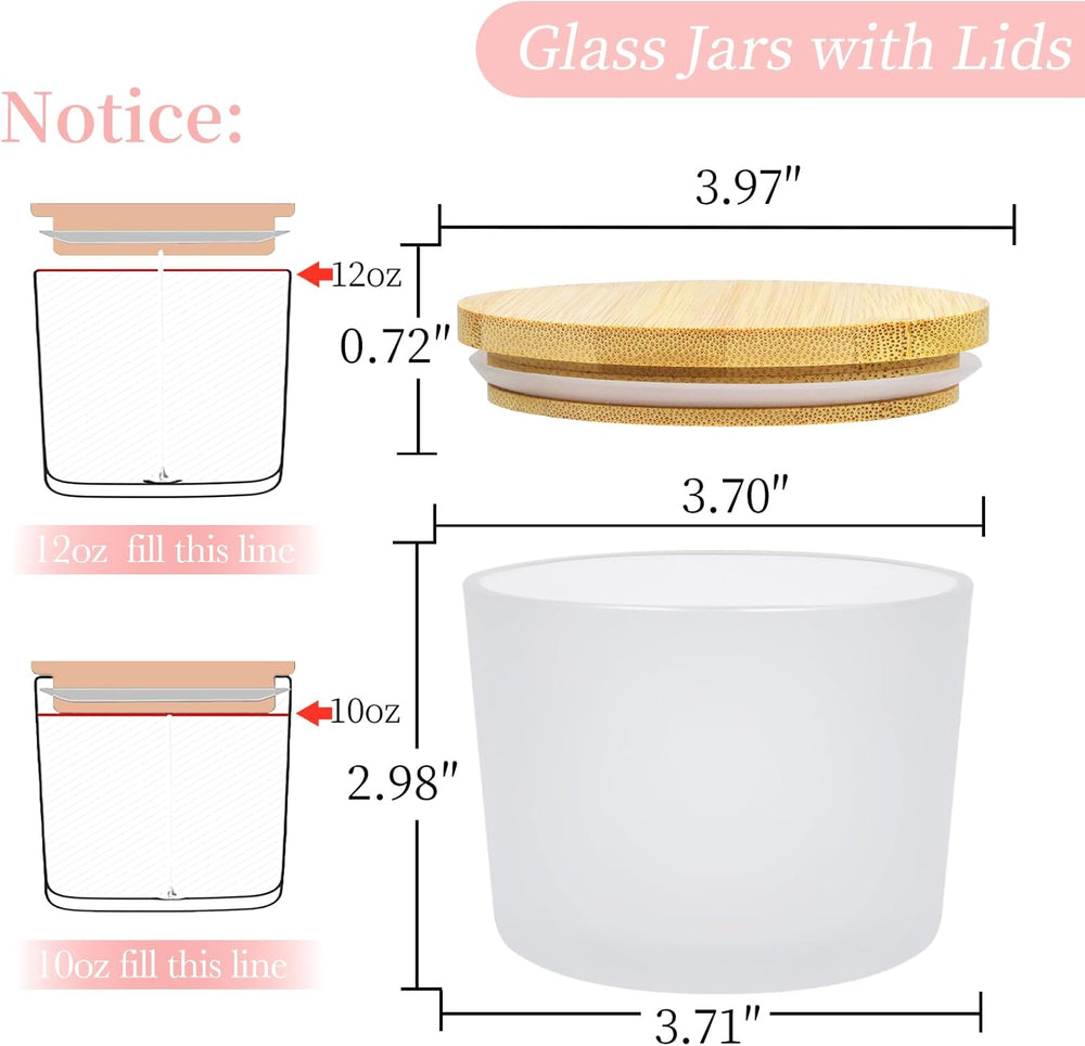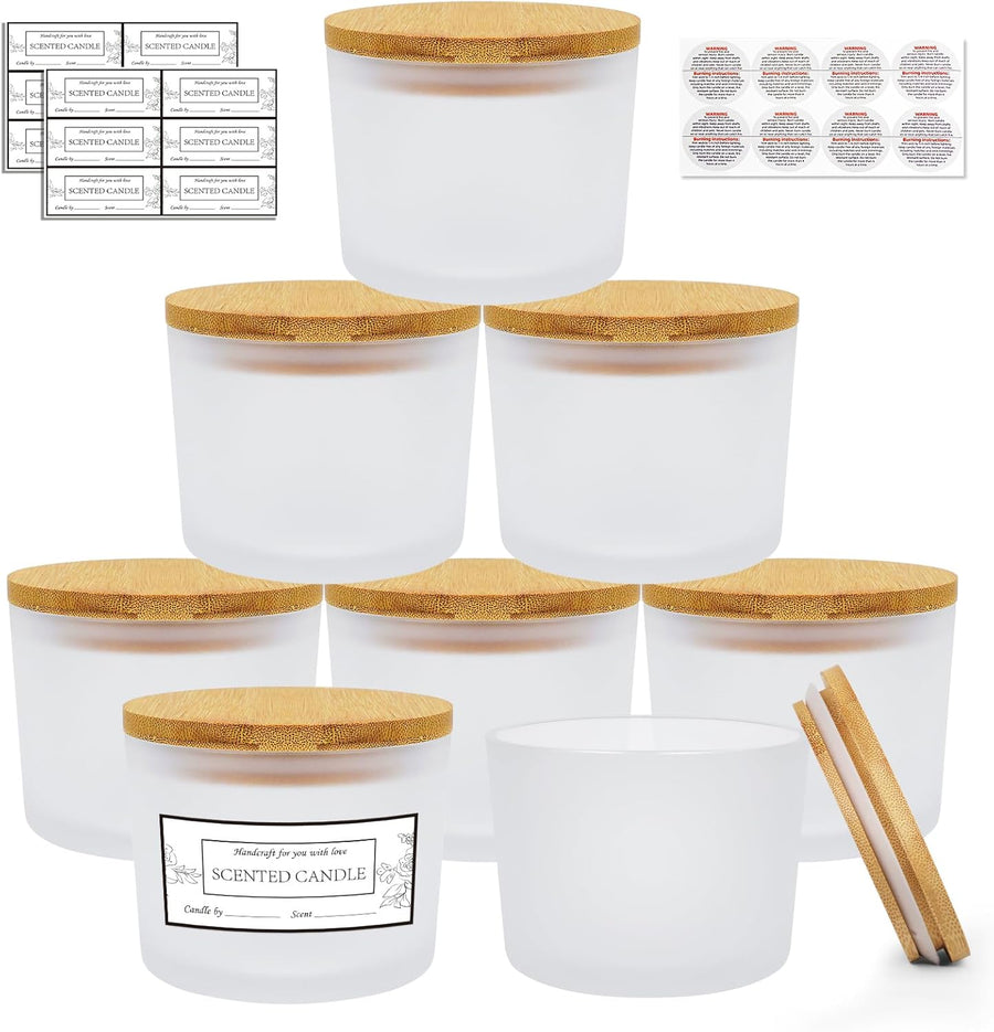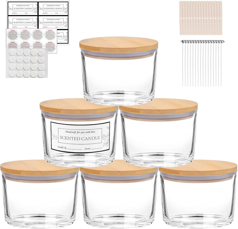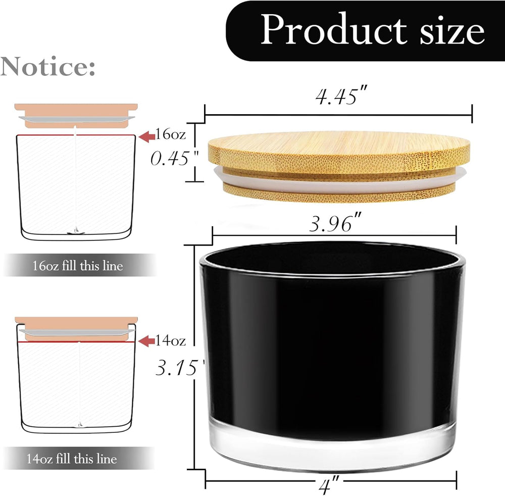 MILIVIXAY 6 Stück 473 ml Kerzengläser Mit Bambusdeckel und Kerzenherstellungs-Kits - 3 Docht-Gläser,