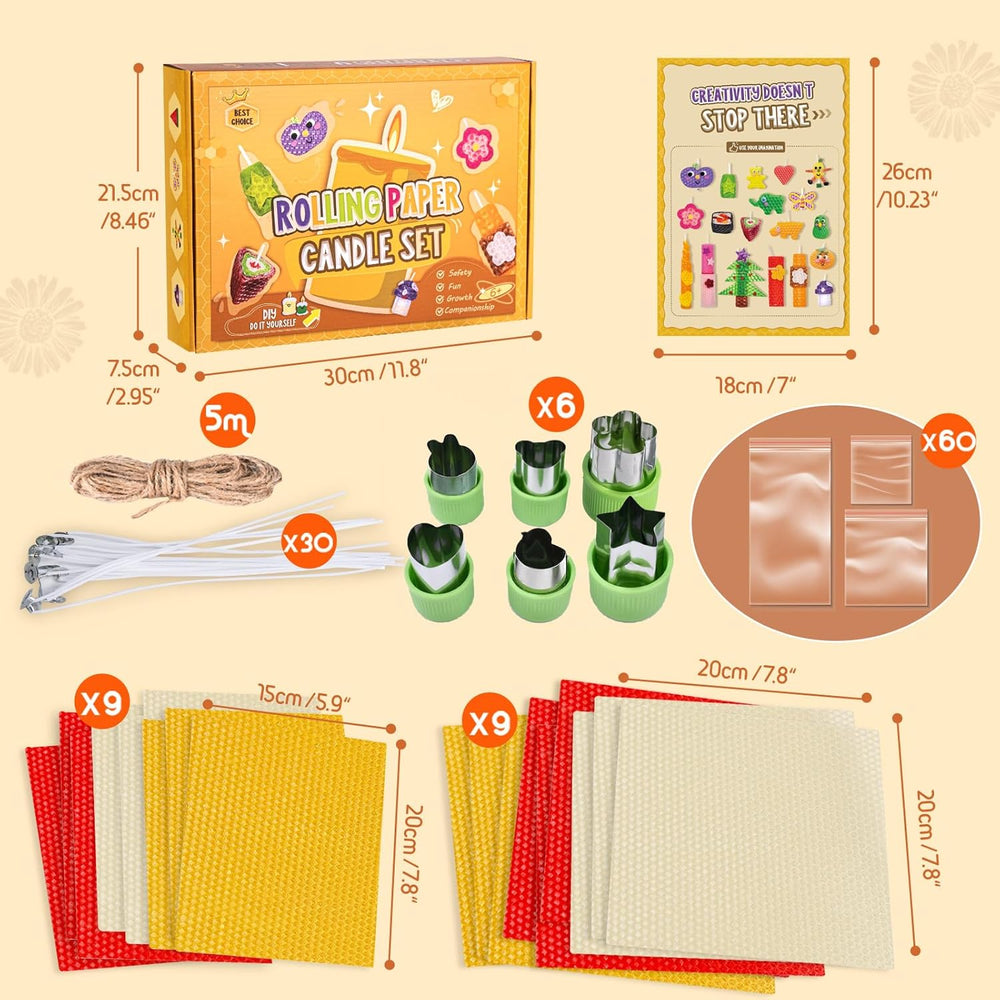 NIKAN Kerzen Selber Machen Set Kinder & Erwachsene Bienenwachs 100% Natürlich - Bienenwachskerzen Ba